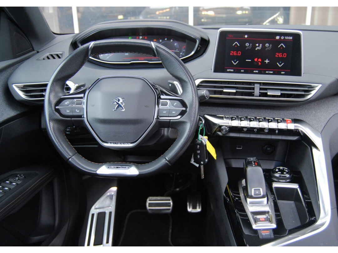 Met de achteruitrijcamera ziet u precies wat er achter de auto gebeurt. Als u regelmatig met een aanhanger of een fietsendrager op pad bent, is de afneembare trekhaak een praktische extra. Connected Services zorgen ervoor dat de belangrijkste functies en data van de auto altijd en overal te checken zijn. Gewoon via de app op de smartphone. Onderweg kunt u veilig genieten van het audiosysteem met DAB-radio en het navigatiesysteem. Want in deze Peugeot bedient u ze vanaf het stuurwiel of met uw stem. Met electronic climate control hoeft u alleen de gewenste temperatuur in te stellen. Het systeem doet de rest. Deze auto is voorzien van regensensor, cruise control, sportstuurwiel en automatisch dimmende spiegels.
