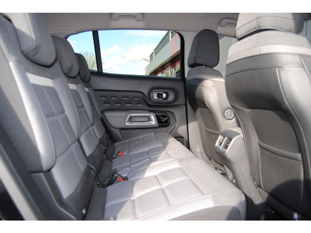 Zijn dynamische uiterlijk maakt al direct duidelijk wat voor rijervaring u van deze Citroen C5 Aircross mag verwachten: pure sportiviteit. De aandrijving van deze Citroen wordt verzorgd door een driecilinder motor en een automatische transmissie. Een gezonde dosis zen-gevoel is bijgeleverd in de vorm van comfortstoelen. De elektrische achterklep opent met een druk op de knop, zodat u gemakkelijk toegang heeft tot de bagageruimte. Bij de uitrusting van deze Citroen horen onder meer 19 inch lichtmetalen velgen, LED koplampen, halflederen bekleding, geluidsisolerende ramen en verschuifbare achterbank.