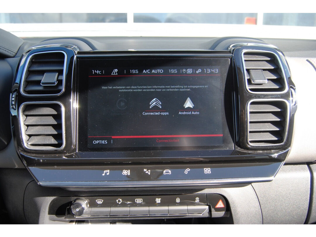 Zoals u mag verwachten van deze Citroen C5 Aircross is hij uitgerust met een reeks aan actieve veiligheidssystemen. Onderweg fungeert de verkeersbord-detectie als het ware als uw bijrijder en attendeert u op de verkeersborden langs de weg. Kop-staartbotsingen vormen een belangrijk deel van de meest voorkomende aanrijdingen. De forward collision warning van deze auto voorkomt zulke botsingen geheel of reduceert de ernst van de schade aanzienlijk. Op lange ritten voorkomt de vermoeidheidsassistent dat uw concentratie afneemt. Bovenop deze veiligheidsfeatures heeft deze Citroen bovendien dodehoekdetector, hill hold functie, Abs - anti blokkeer systeem met brake assistant en bandenspanningcontrolesysteem.