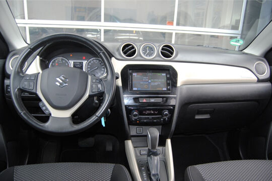 Dankzij hoogwaardige techniek en verschillende veiligheidssystemen, biedt deze Suzuki Vitara u optimale veiligheid en comfort tijdens iedere rit. De aandrijving van deze Suzuki wordt verzorgd door een viercilinder motor en een automatische transmissie. De verwarmbare voorstoelen zijn een heerlijke extra optie, waarmee u uzelf en uw bijrijder een groot plezier doet. Natuurlijk behoren 17 inch lichtmetalen velgen, LED-dagrijverlichting, donker getint glas achter en in delen neerklapbare achterbank ook tot de uitrusting van deze complete auto.